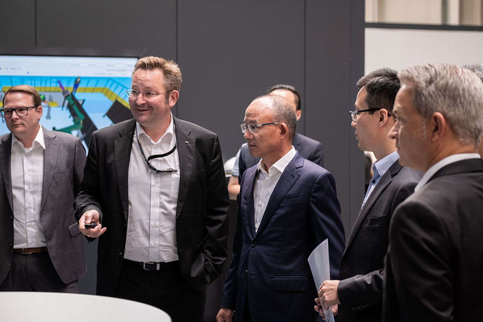 2022年7月19日,復(fù)星國際董事長郭廣昌一行于德國訪問期間參觀考察了翌耀科技旗下企業(yè)FFT Produktionssysteme GmbH & Co. KG(下簡稱FFT),并為FFT位于富爾達(dá)的展廳揭幕。FFT 首席執(zhí)行官Tristan Pfurr陪同郭廣昌一行參觀了全新落成的展廳,向大家展示了各種機(jī)器人的交互合作,以及FFT的專有技術(shù)和相關(guān)應(yīng)用領(lǐng)域。